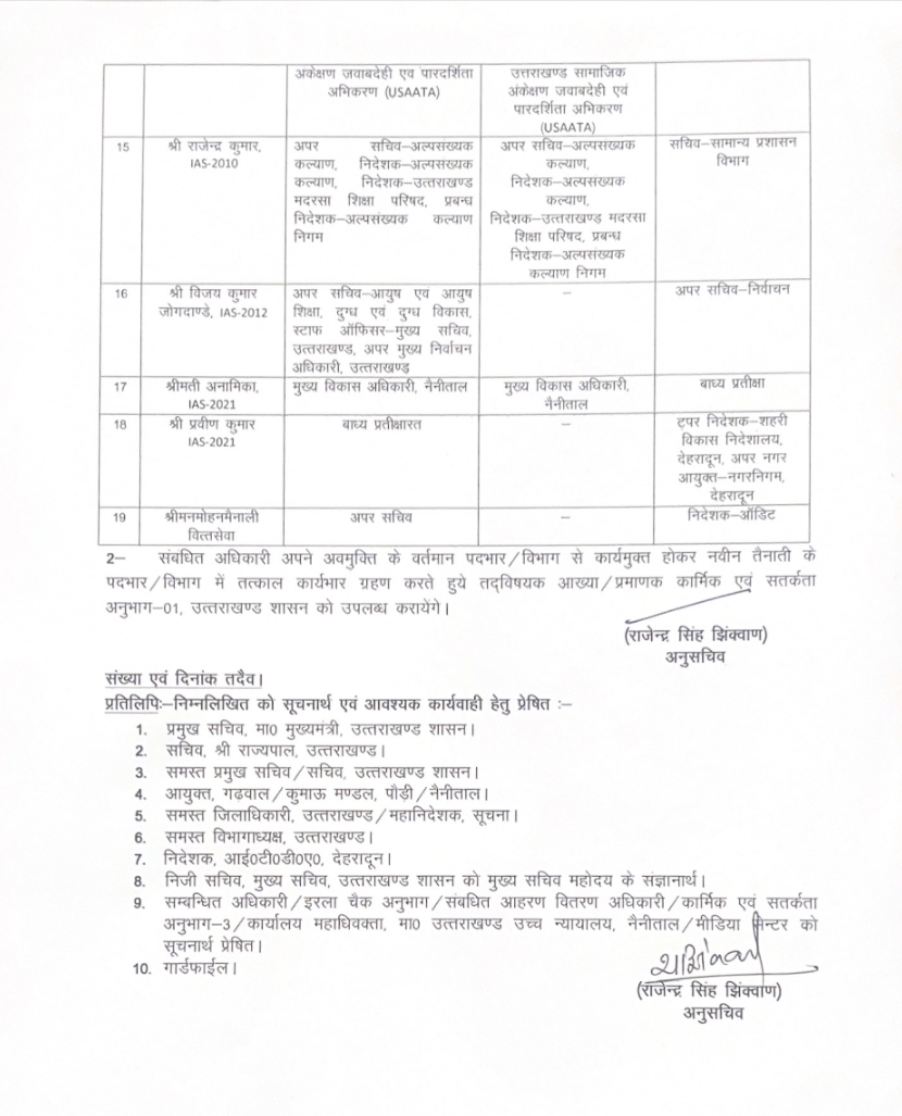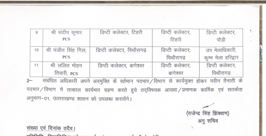 उत्तराखंड में 19 IAS और 11 PCS अधिकारियों का तबादल