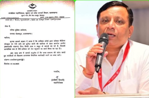 पुलिस को सौंपे साजिश के पुख्ता डिजिटल सबूत देहरादून। महानिदेशक सूचना बंशीधर तिवारी ने सोशल मीडिया पर उनके खिलाफ चल रहे दुष्प्रचार और फेक पोस्ट्स के मामले में वरिष्ठ पुलिस अधीक्षक देहरादून अजय सिंह को पत्र लिखा है। उन्होंने अपनी छवि धूमिल करने की साजिश में शामिल व्यक्तियों के खिलाफ वैधानिक कार्रवाई की मांग की है। डीजी सूचना बंशीधर तिवारी ने पत्र में कहा है कि “कतिपय व्यक्तियों द्वारा सोशल मीडिया पर मेरी छवि को धूमिल करने की साजिश के तहत बिना किसी तथ्य के आरोप लगाए जा रहे हैं, जिससे मेरी सामाजिक प्रतिष्ठा को ठेस पहुंच रही है।” उन्होंने [more…]