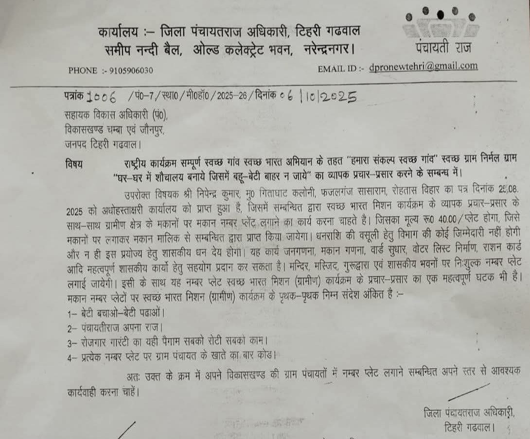 मकानों पर नंबर प्लेट लगाने के टिहरी और उत्तरकाशी के डीपीआरओ के आदेश रद्द