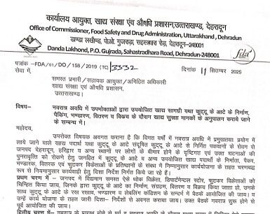 खाद्य सुरक्षा मानकों का पालन न किया तो होगी सख्त कार्रवाई: डॉ. आर. राजेश कुमार देहरादून। नवरात्र और त्योहारी सीजन को देखते हुए मुख्यमंत्री पुष्कर सिंह धामी के नेतृत्व में प्रदेश सरकार ने उपभोक्ताओं की सेहत को प्राथमिकता देते हुए बड़ा कदम उठाया है। खाद्य सुरक्षा एवं औषधि प्रशासन (एफ़डीए) अलर्ट मोड पर आ गया है। विभाग की ओर से प्रदेशभर में कुट्टू के आटे की गुणवत्ता और सुरक्षा सुनिश्चित करने के लिए विशेष अभियान चलाया जाएगा। एफ़डीए आयुक्त डॉ. आर. राजेश कुमार ने कहा कि नवरात्र के दौरान उपवास में व्यापक रूप से प्रयुक्त होने वाले कुट्टू के आटे [more…]