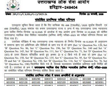 उत्तराखण्ड PCS-J परीक्षा-2023 का संशोधित प्रारम्भिक परीक्षा परिणाम घोषित