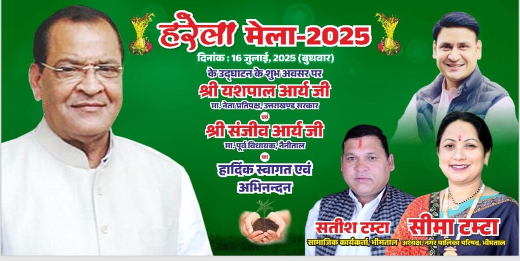 भीमताल : राज्यभर में हरेला पर्व का शुभारंभ 16 जुलाई से होगा। इस अवसर पर जनपद नैनीताल में एक माह तक विभिन्न कार्यक्रमों के तहत फलदार और अन्य प्रजातियों के पौधों का रोपण किया जाएगा। मुख्य विकास अधिकारी अनामिका ने बताया कि पर्व की थीम “हरेला का त्योहार मनाओ, धरती मां का ऋण चुकाओ। एक पेड़ मां के नाम” निर्धारित की गई है। पौधारोपण अभियान में छात्र-छात्राएं, जनप्रतिनिधि, आम नागरिक और विभागीय अधिकारी भाग लेंगे। 50% पौधे पहले तीन दिन में ही रोपे जाएंगे, जिनका रख-रखाव स्थानीय स्तर पर किया जाएगा। जिला स्तरीय कार्यक्रम [more…]