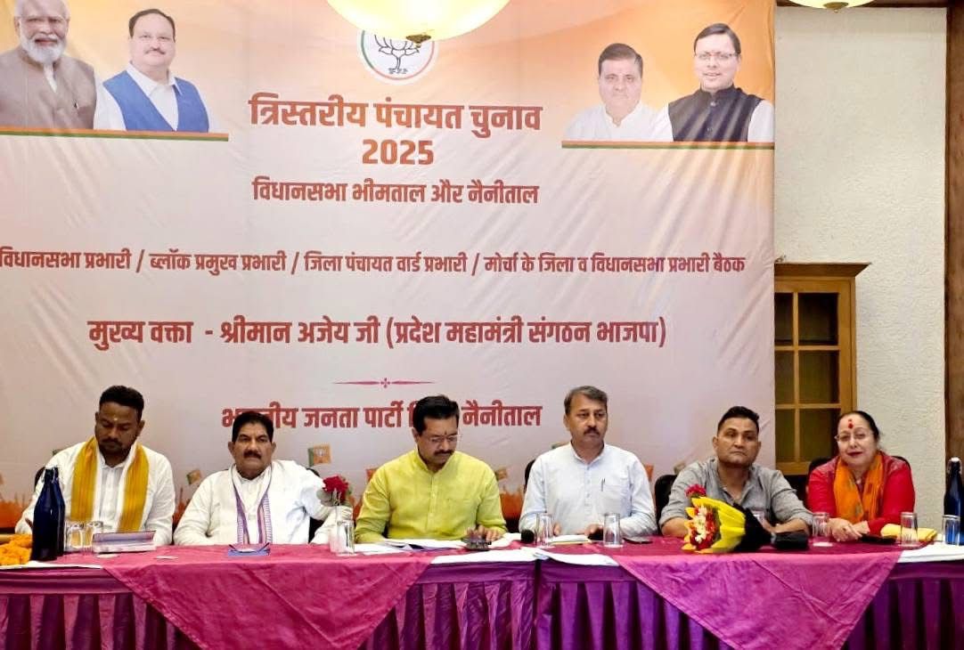 संगठन महामंत्री अजय कुमार ने किया मार्गदर्शन भीमताल : त्रिस्तरीय पंचायत चुनाव-2025 की तैयारियों को लेकर भीमताल और नैनीताल विधानसभा क्षेत्रों के विधानसभा, ब्लॉक एवं जिला पंचायत वार्ड प्रभारियों तथा मण्डल अध्यक्षों की एक महत्वपूर्ण बैठक आयोजित की गई।बैठक में मुख्य वक्ता के रूप में भाजपा के प्रदेश महामंत्री (संगठन) अजय कुमार ने कार्यकर्ताओं को मार्गदर्शन देते हुए संगठन को मजबूती से चुनावी मैदान में उतरने का आह्वान किया।इस अवसर पर भाजपा प्रदेश महामंत्री राजेन्द्र सिंह बिष्ट, जिला प्रभारी नैनीताल राजेश कुमार, भाजपा जिला अध्यक्ष प्रताप सिंह बिष्ट, नैनीताल विधायक सरिता आर्या और भीमताल [more…]
