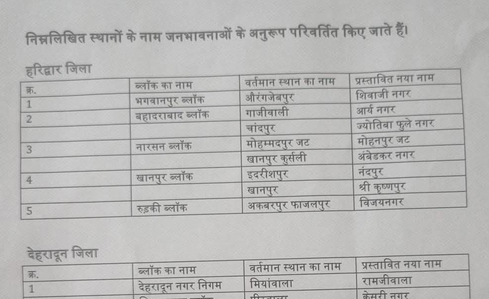 मुख्यमंत्री धामी ने देहरादून समेत चार जिलों के 15 स्थानों के नाम बदलने की घोषणा की
