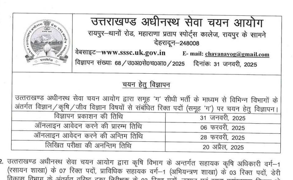 UKSSSC ने निकाली बम्पर भर्तियां