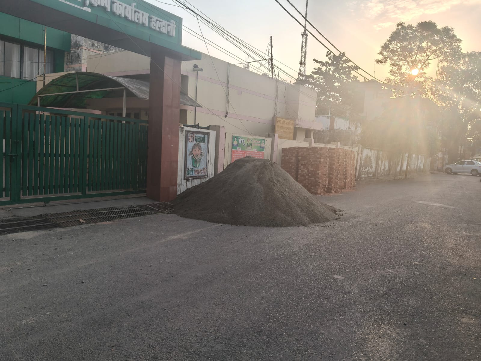 सड़क पर डाली निर्माण सामग्री सीज, 10 हजार का चालान
