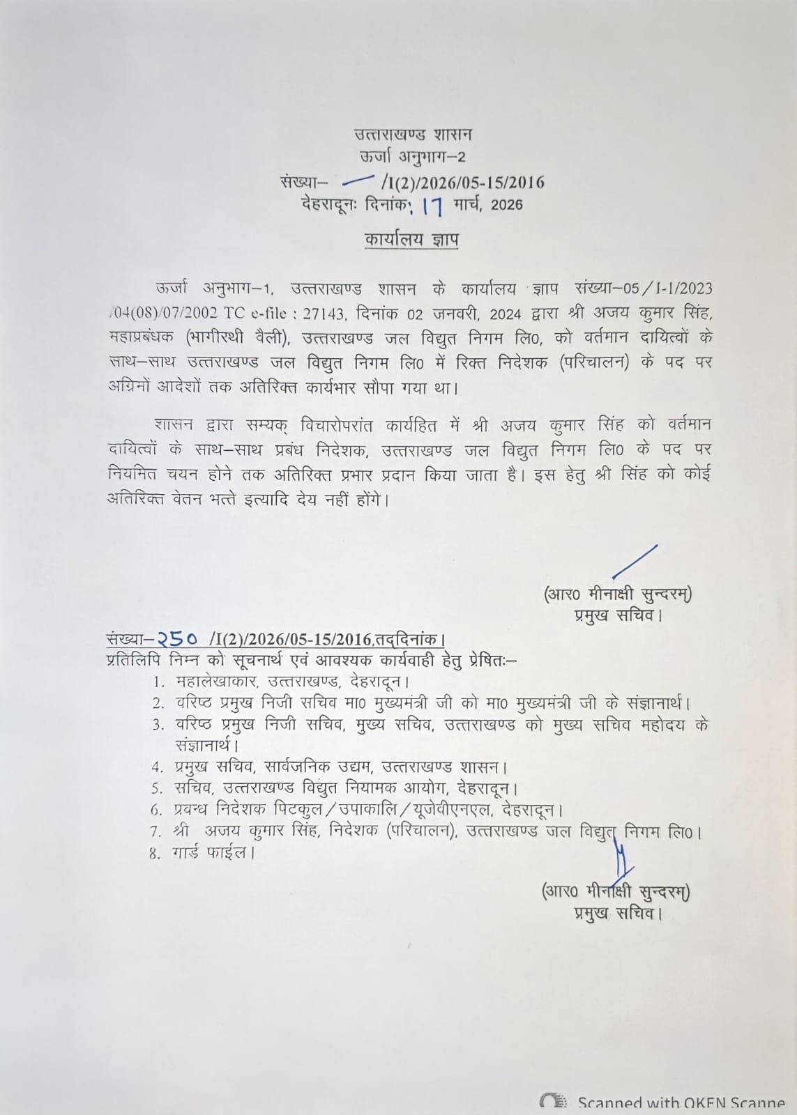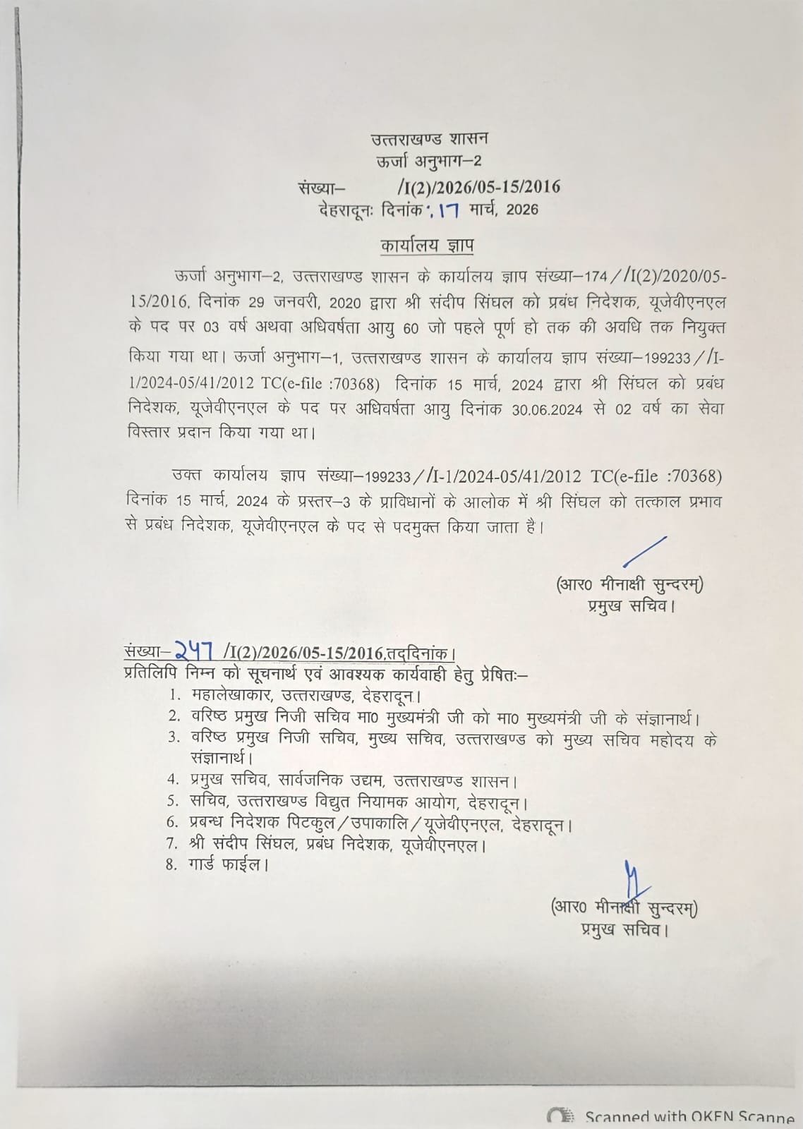 बिग एक्शन : सरकार ने UPCL के MD अनिल कुमार और UJVNL के MD संदीप सिंघल को हटाया, इन्हें सौंपा चार्ज March 17, 2026 Estimated read time 0 min read