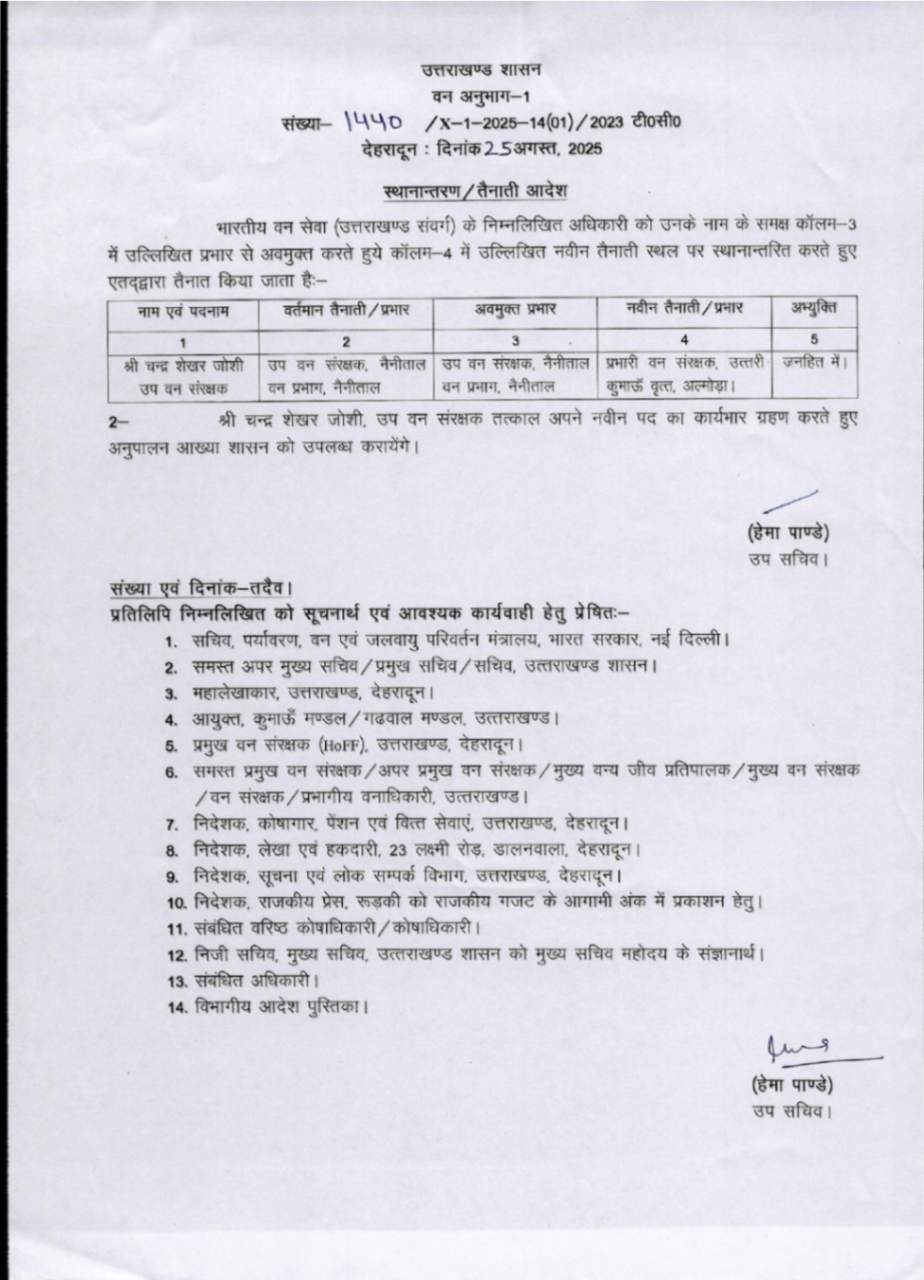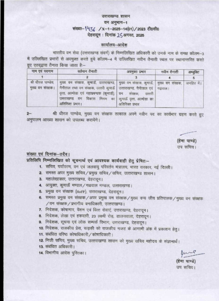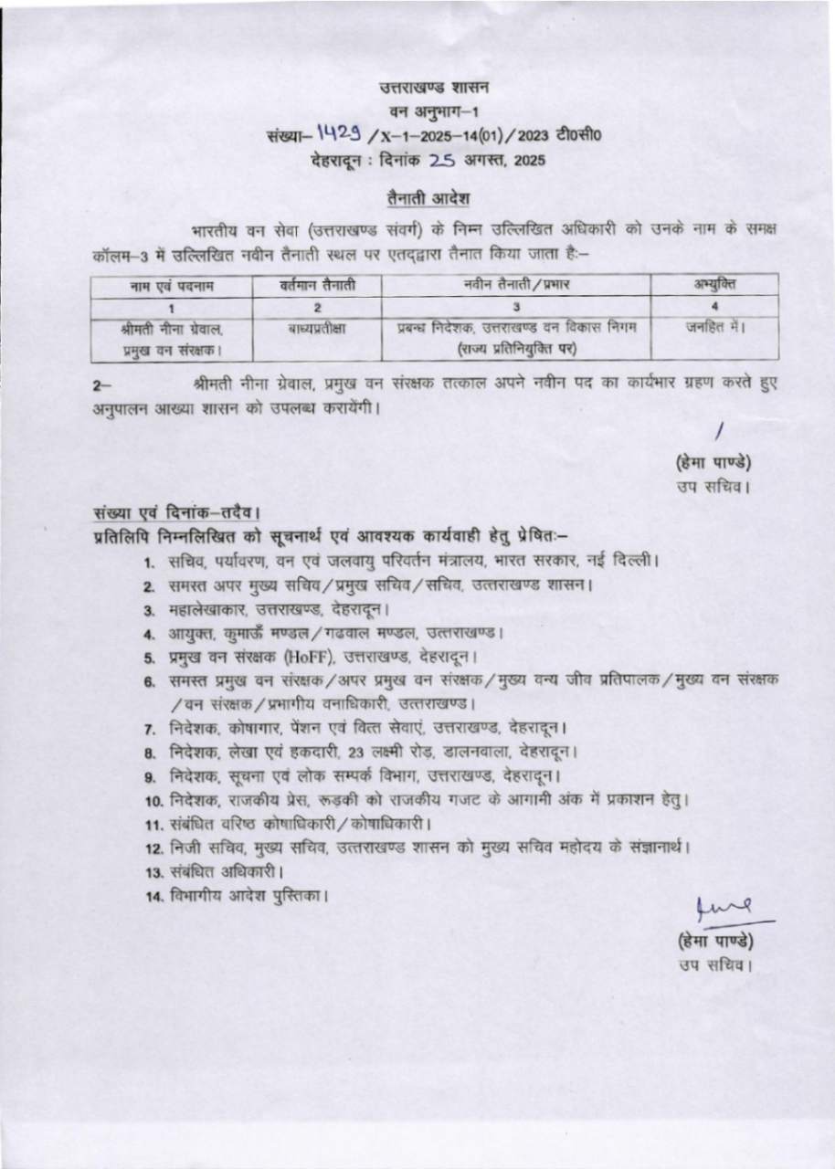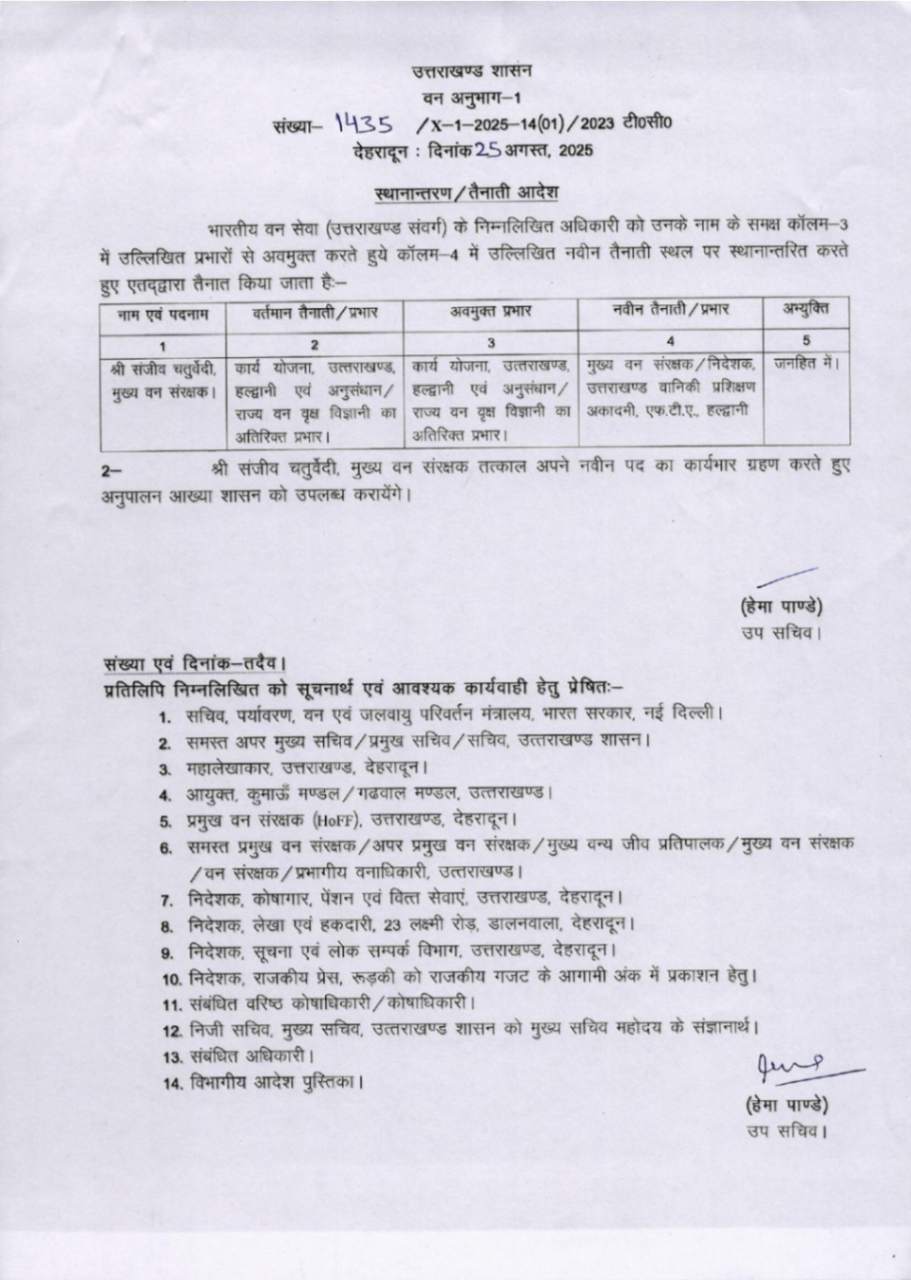 उत्तराखंड में IFS अधिकारियों के बम्पर ट्रांसफर, देखें आदेश August 25, 2025 Estimated read time 0 min read