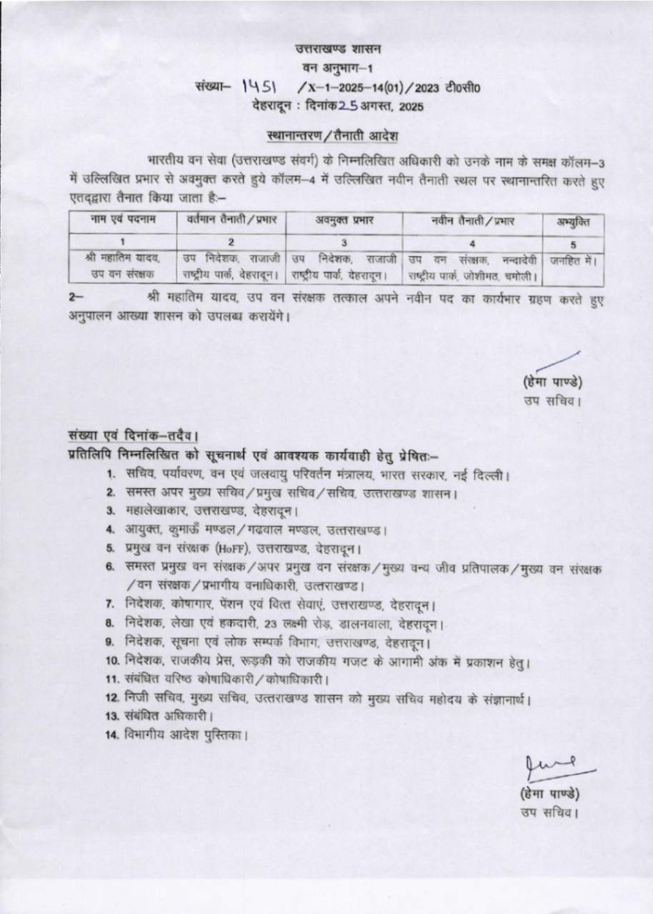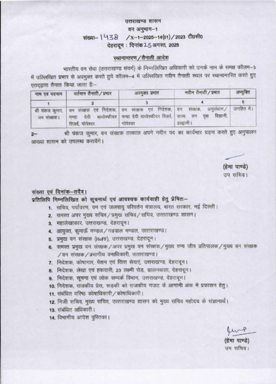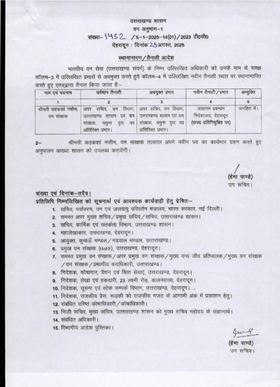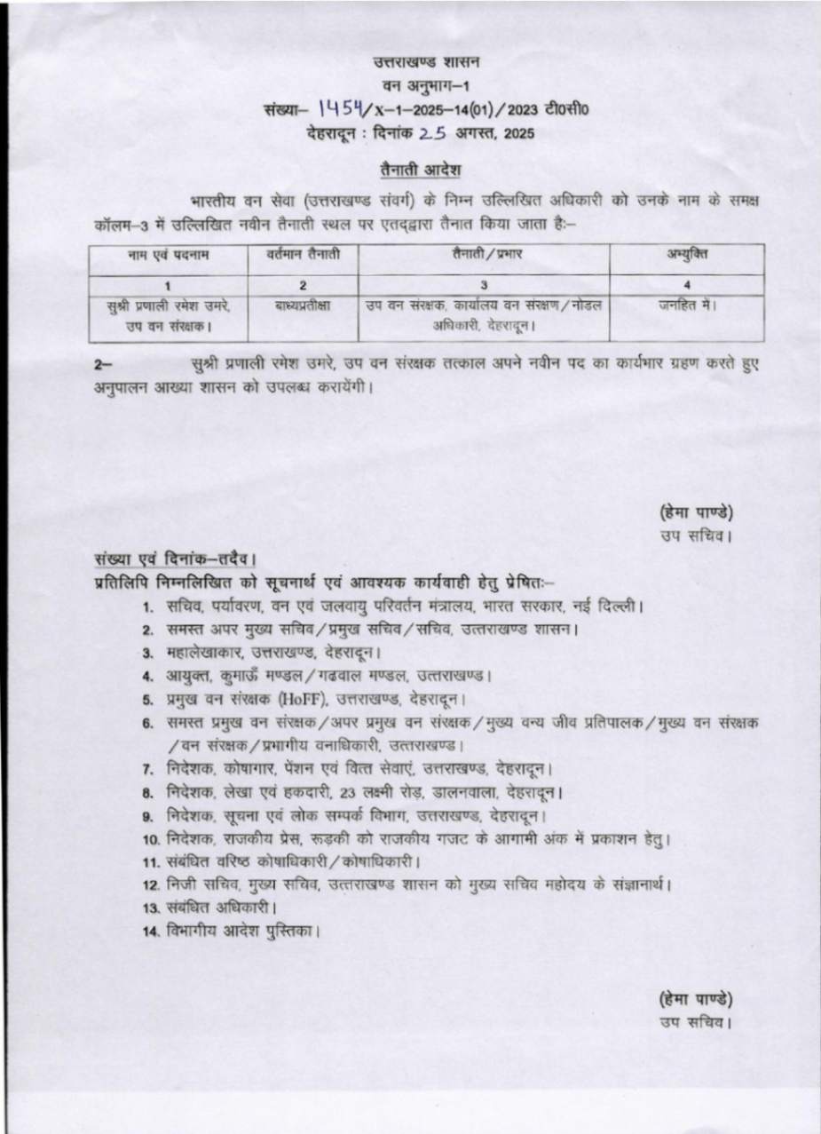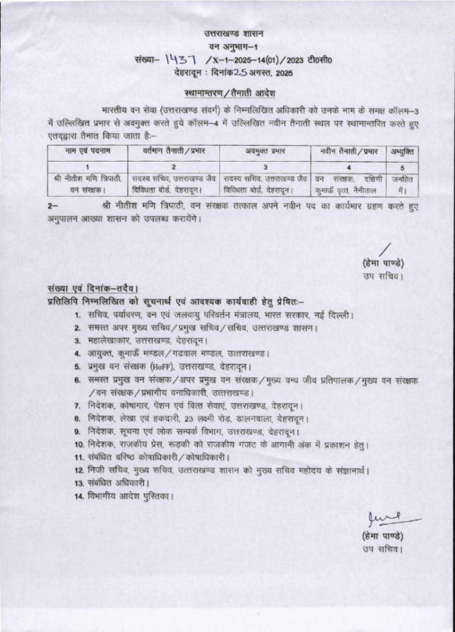 उत्तराखंड में IFS अधिकारियों के बम्पर ट्रांसफर, देखें आदेश August 25, 2025 Estimated read time 0 min read