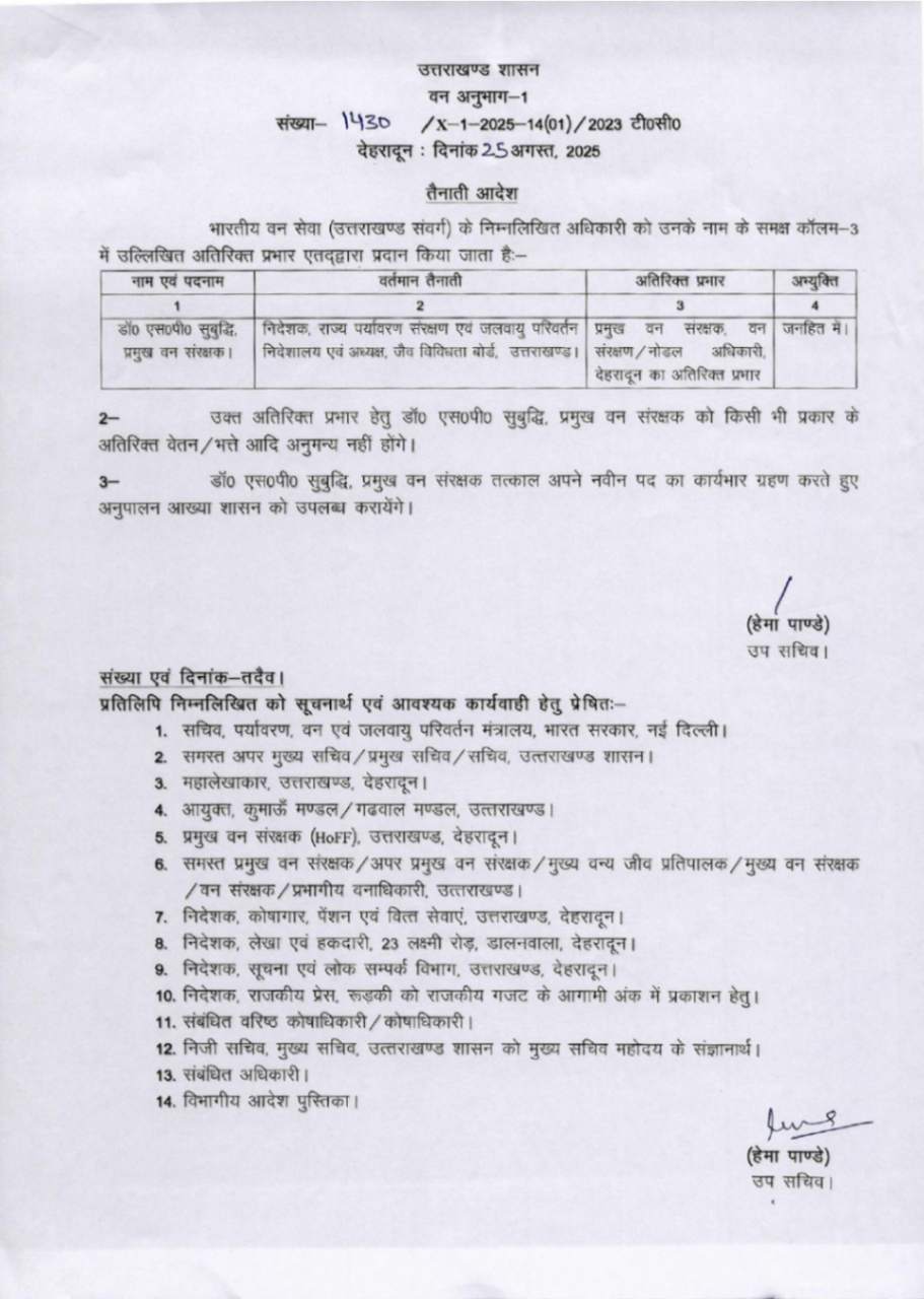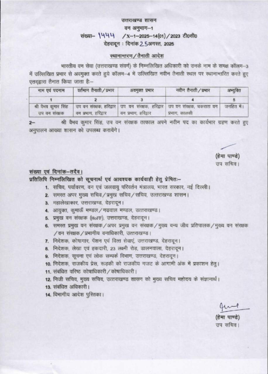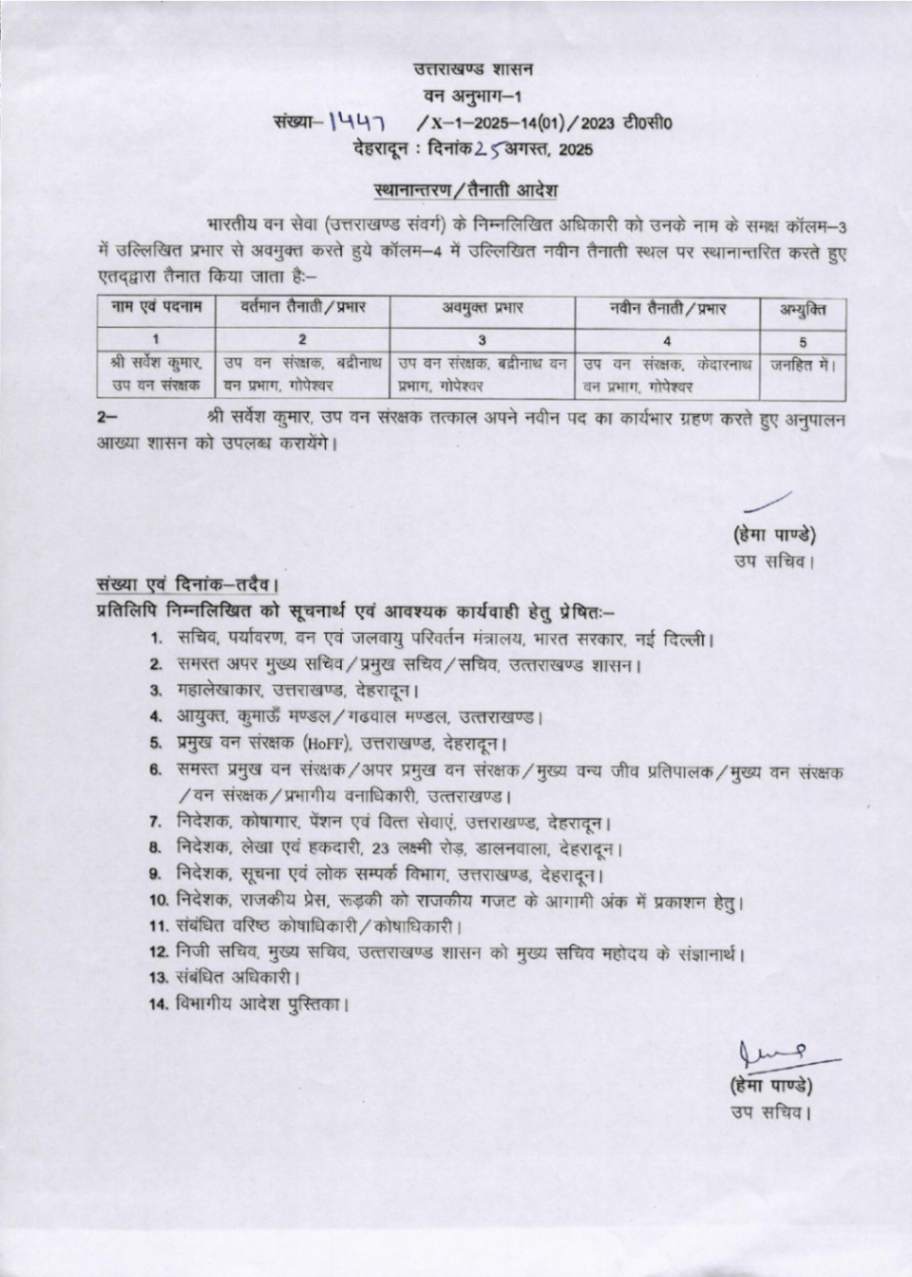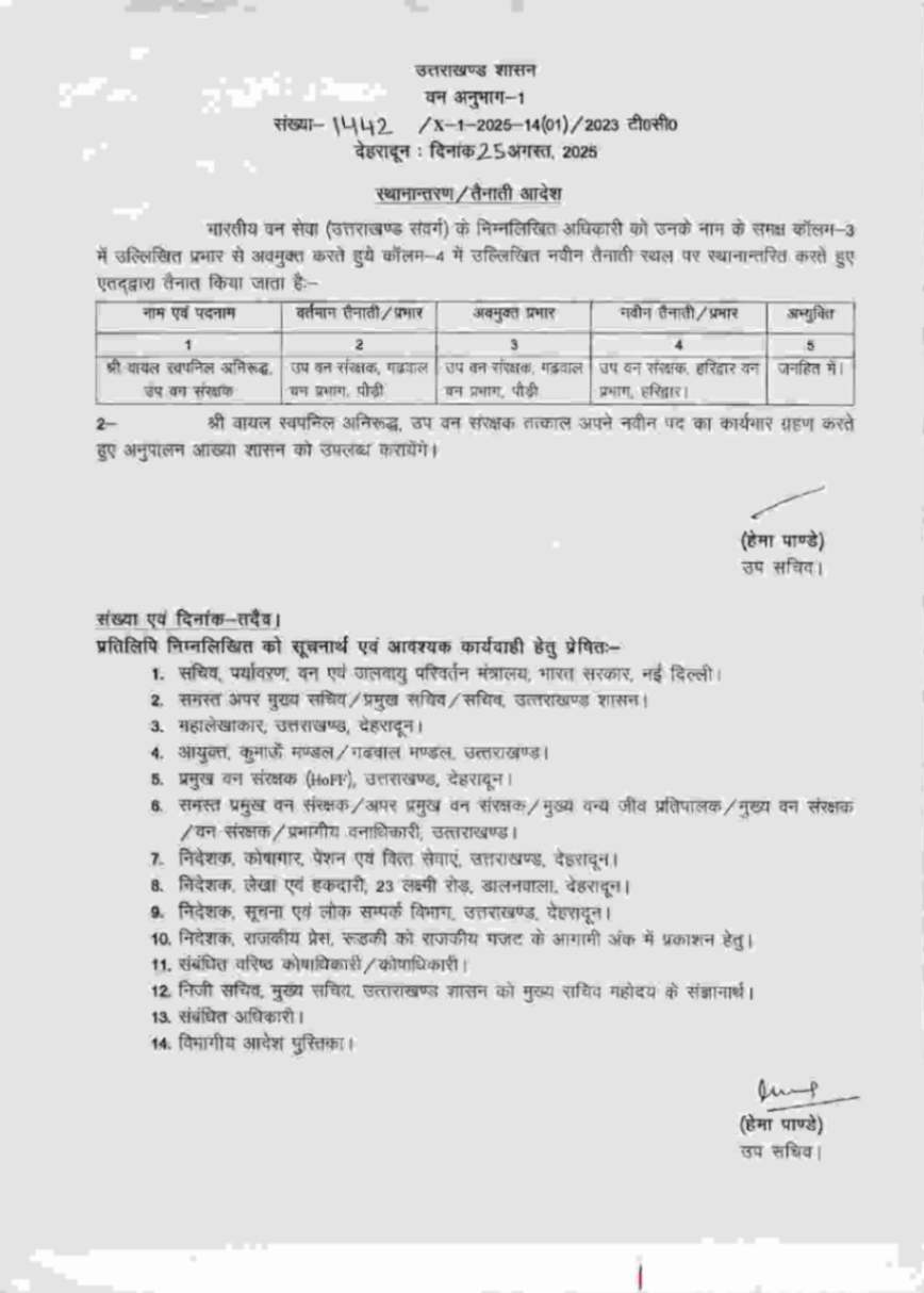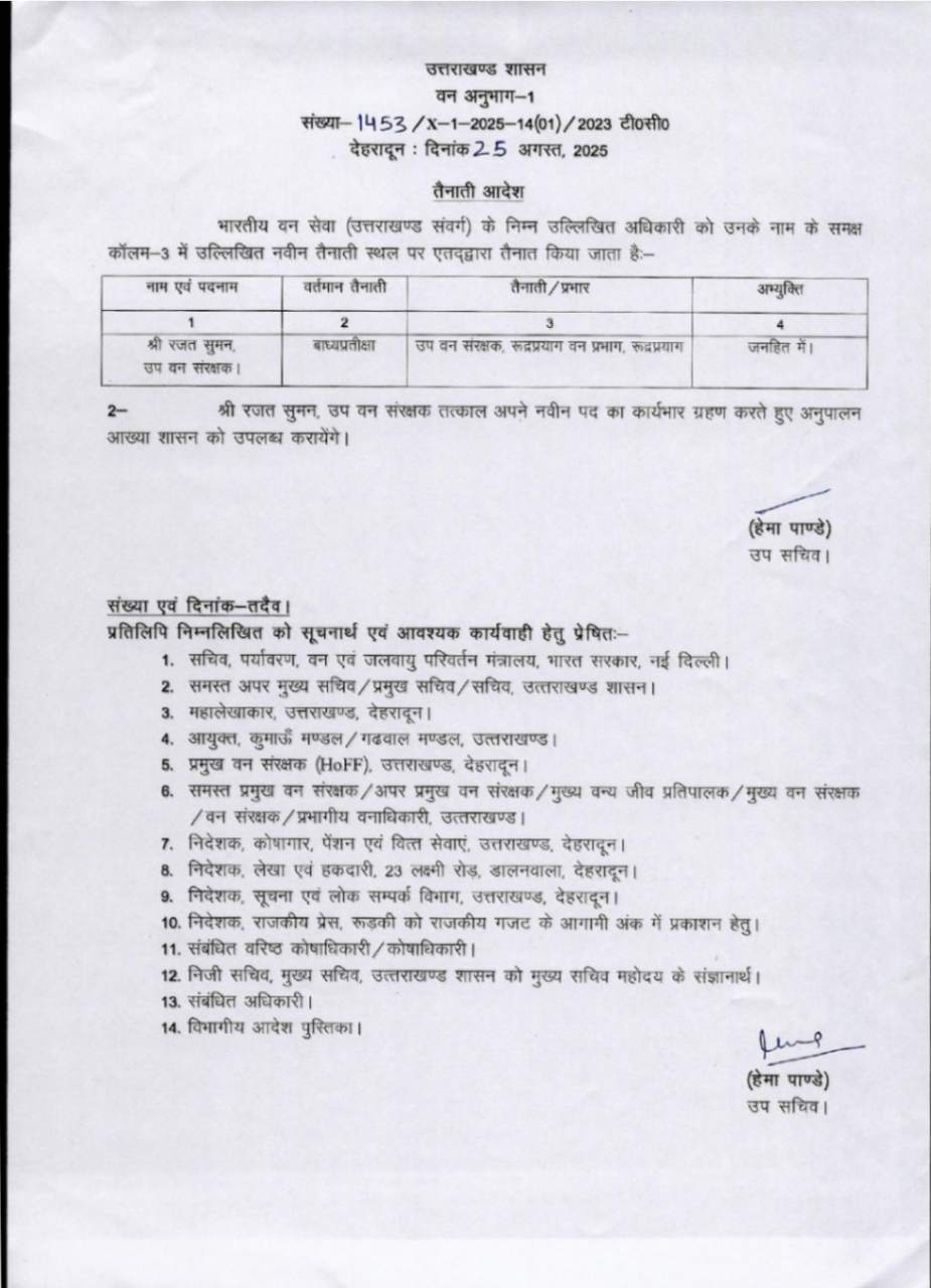 उत्तराखंड में IFS अधिकारियों के बम्पर ट्रांसफर, देखें आदेश August 25, 2025 Estimated read time 0 min read