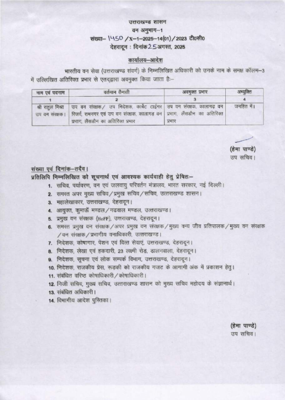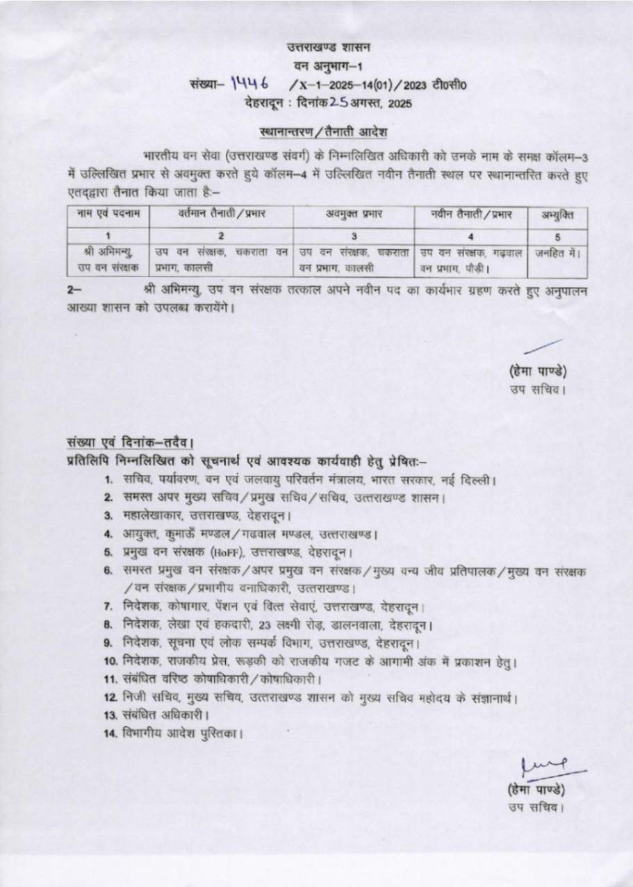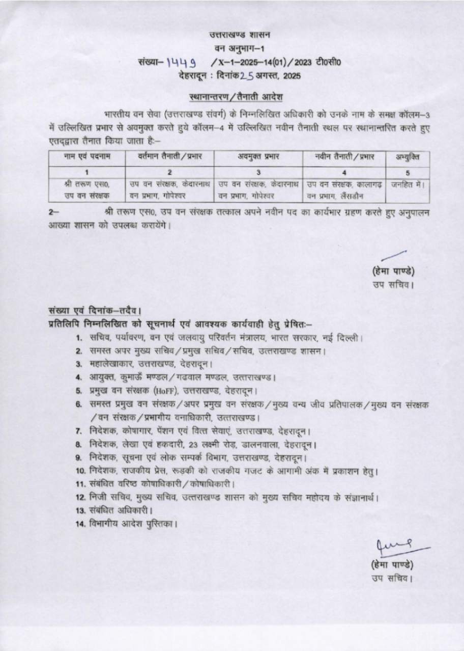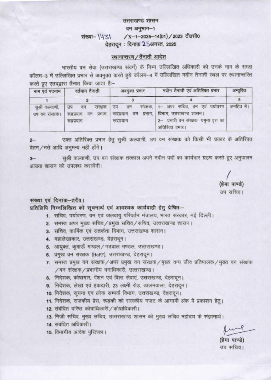 उत्तराखंड में IFS अधिकारियों के बम्पर ट्रांसफर, देखें आदेश August 25, 2025 Estimated read time 0 min read