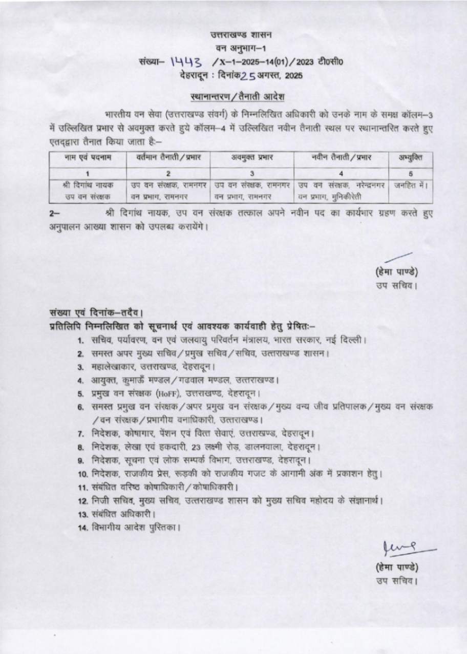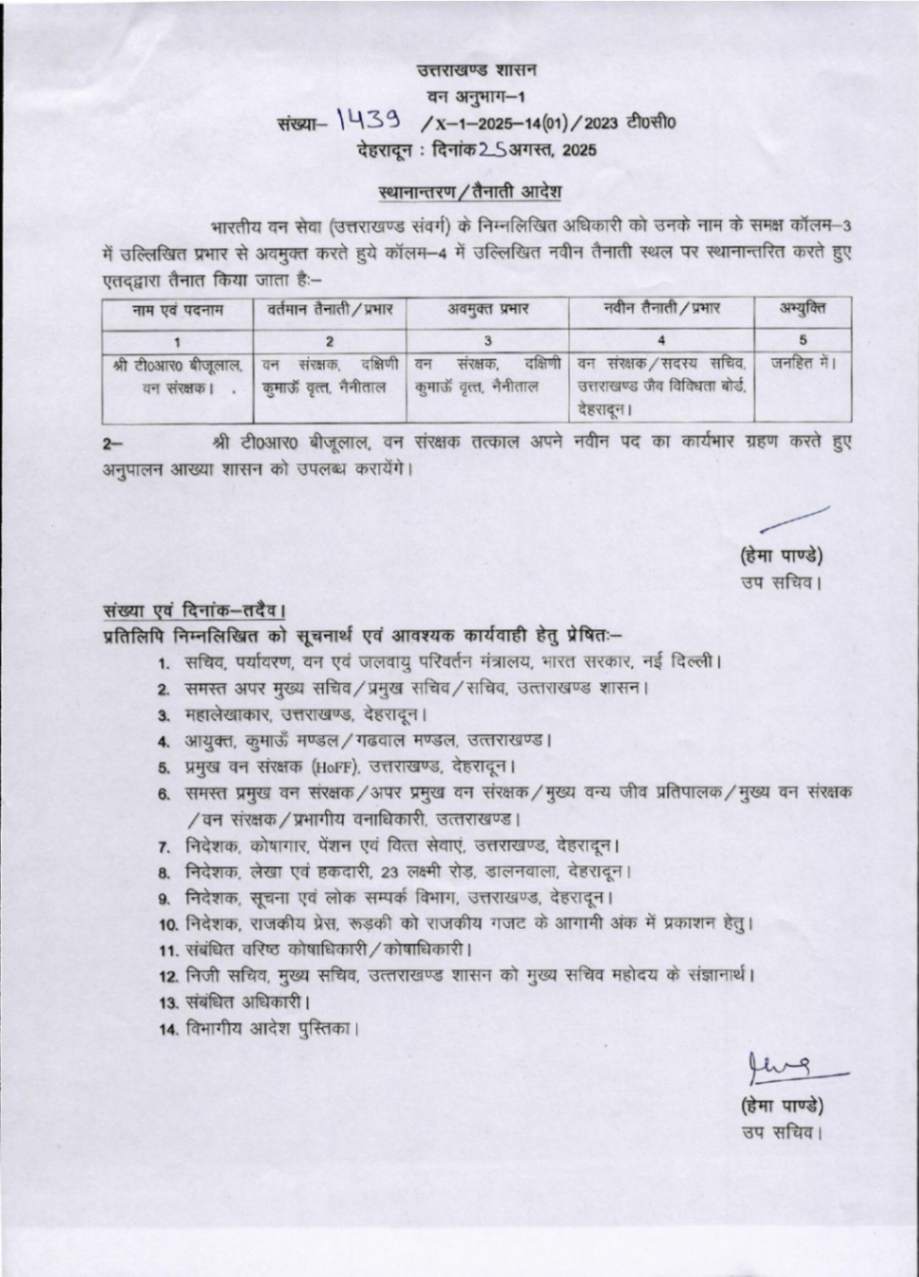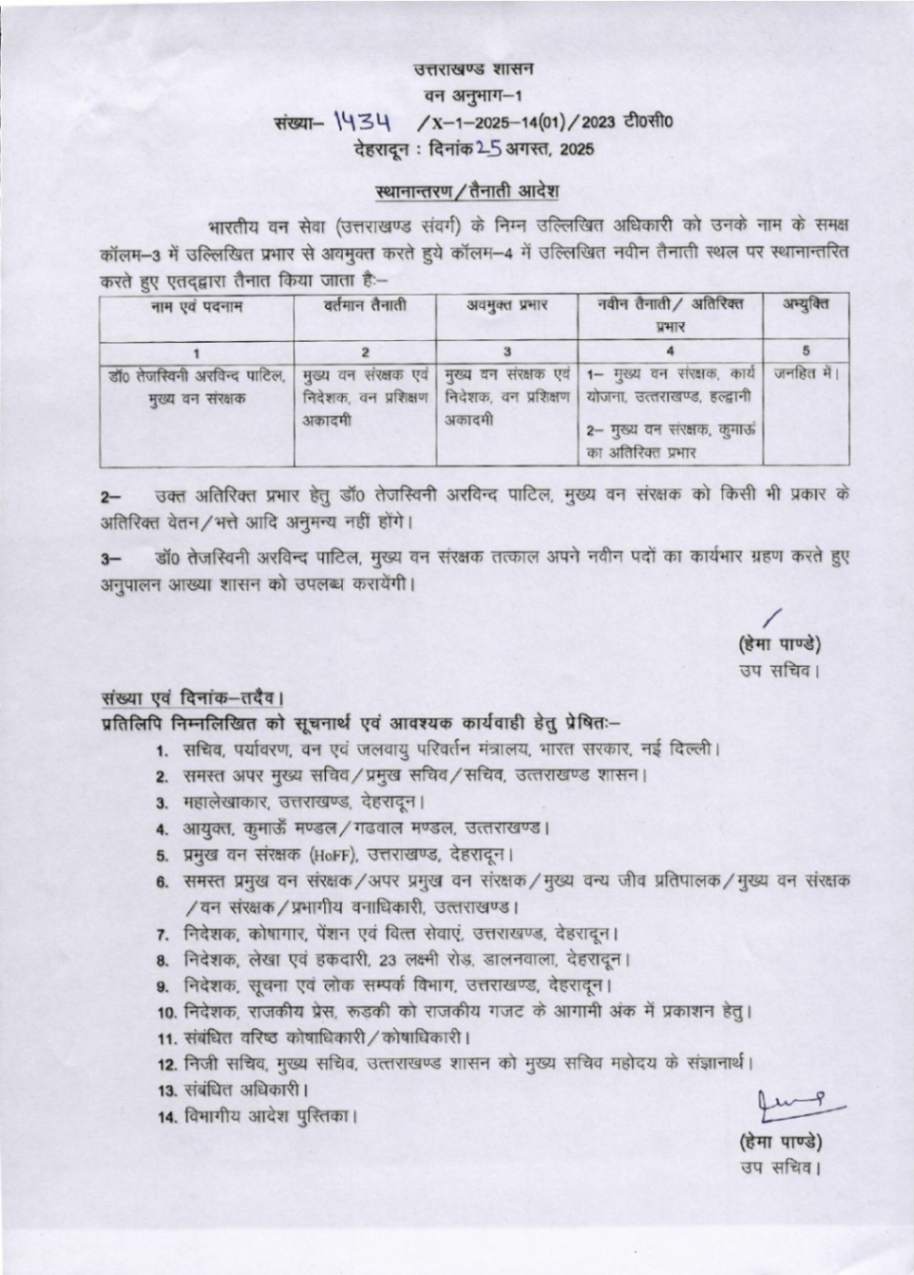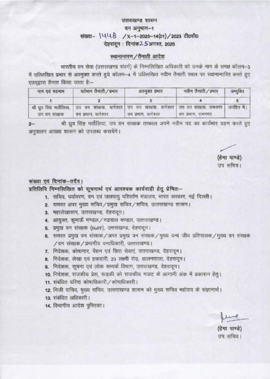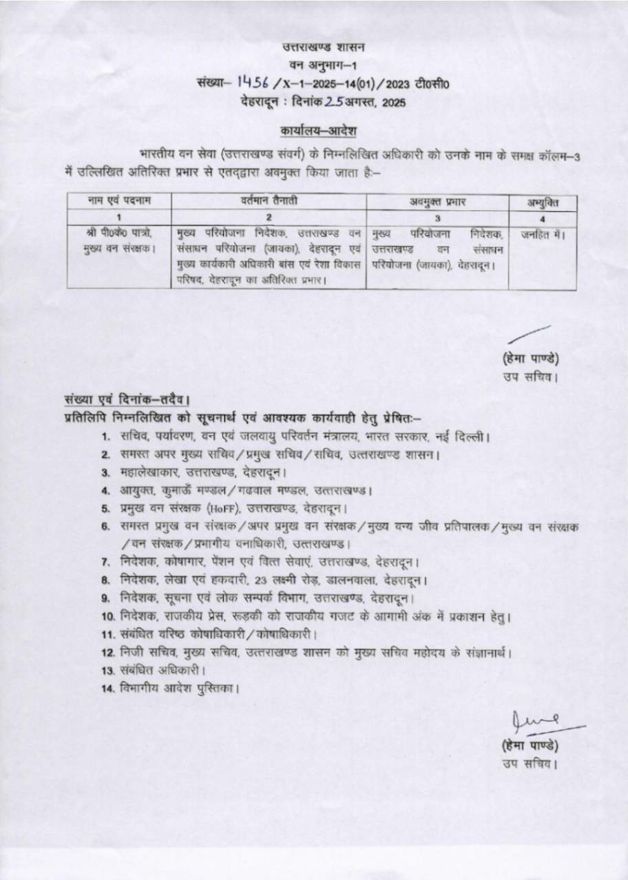 उत्तराखंड में IFS अधिकारियों के बम्पर ट्रांसफर, देखें आदेश August 25, 2025 Estimated read time 0 min read