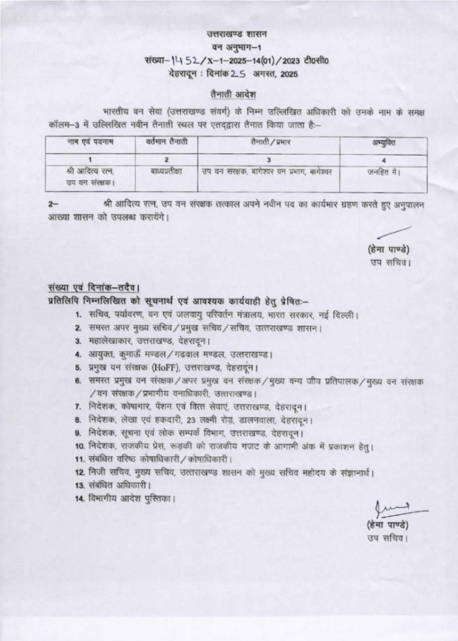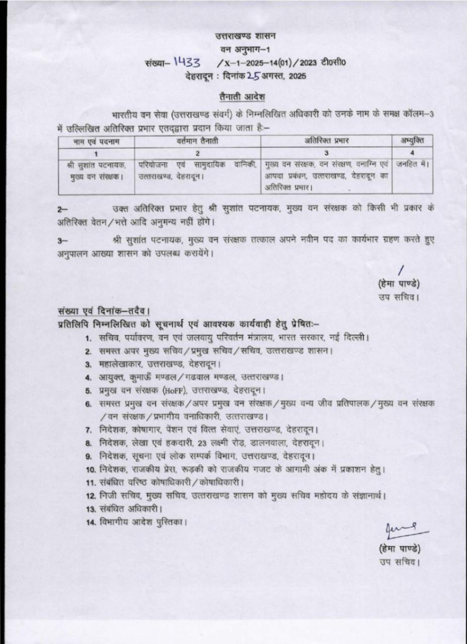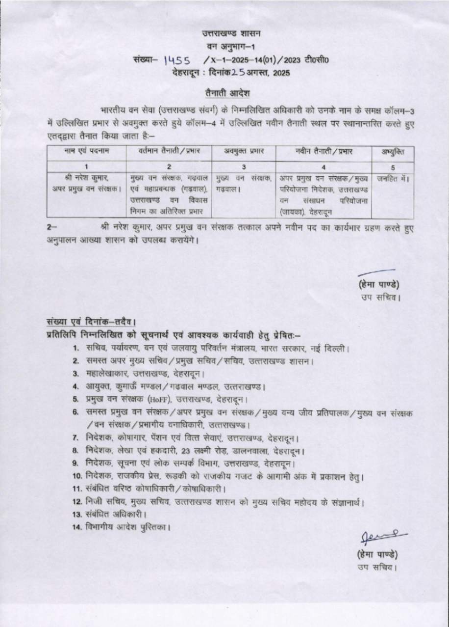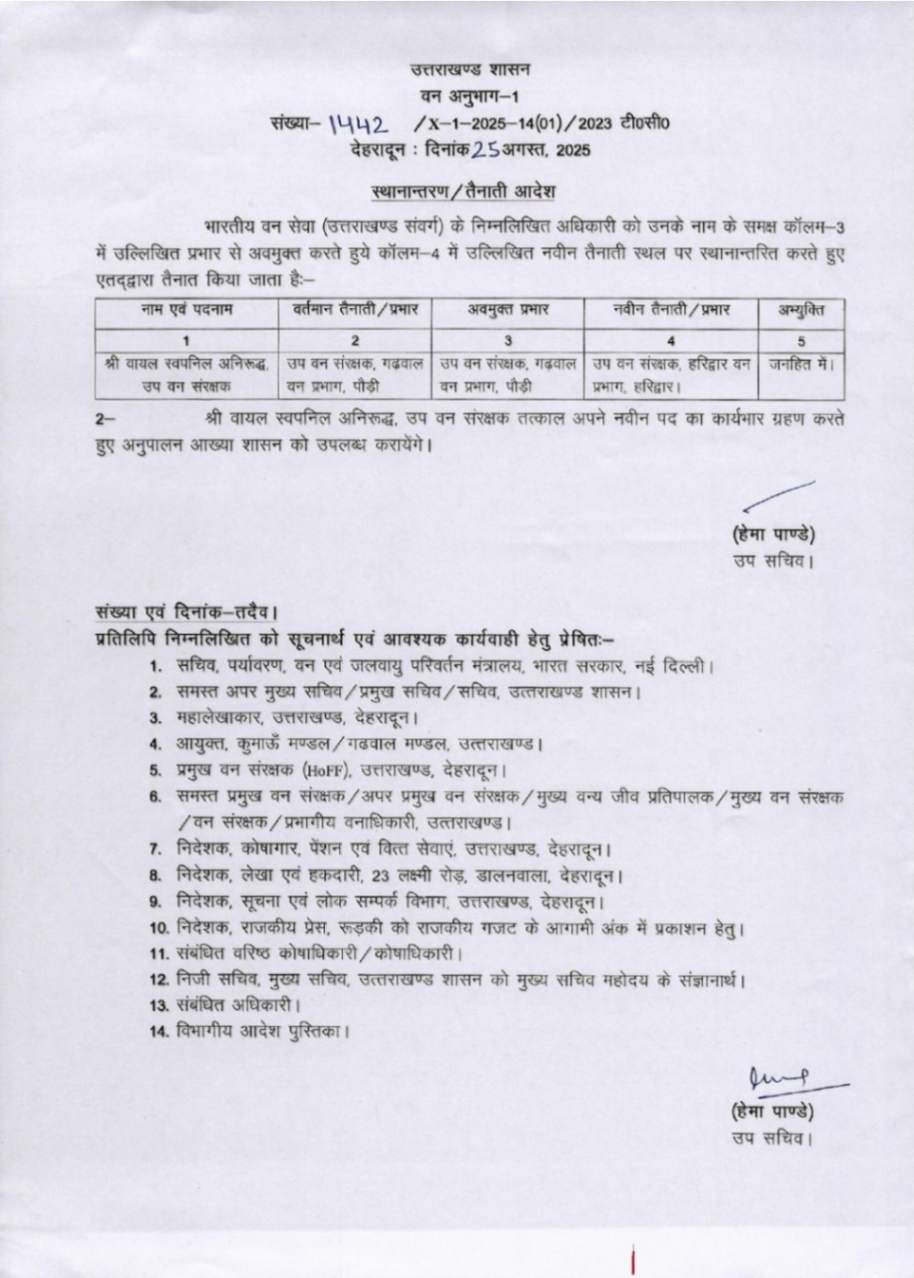 उत्तराखंड में IFS अधिकारियों के बम्पर ट्रांसफर, देखें आदेश August 25, 2025 Estimated read time 0 min read