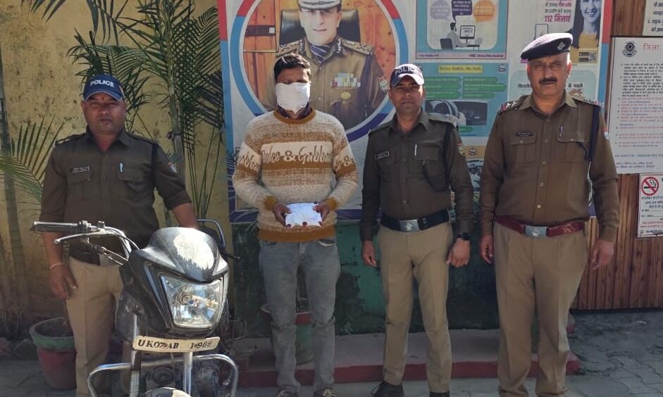 विकासनगर। कोतवाली विकासनगर पुलिस ने 173.33 ग्राम अवैध स्मैक के साथ एक नशा तस्कर को किया गिरफ्तार। पुलिस ने घटना में प्रयुक्त मोटरसाइकिल को सीज कर दिया है। बरामद स्मैक की अनुमानित कीमत 52 लाख रुपए है। थाना विकासनगर पुलिस द्वारा शुक्रवार देर रात्रि 12.44 बजे चैकिंग के दौरान हरबर्टपुर बस अड्डे के से आरिफ पुत्र लुकमान निवासी खुशहालपुर थाना सहसपुर, देहरादून उम्र 32 वर्ष को 173.33 ग्राम अवैध स्मैक के साथ गिरफ्तार किया है। अभियुक्त के विरुद्ध थाना विकासनगर में अन्तर्गत धारा 8/21/29/60 एनडीपीएस एक्ट के अंतर्गत अभियोग पंजीकृत किया गया है अभियुक्त को न्यायालय पेश किया जा रहा [more…]