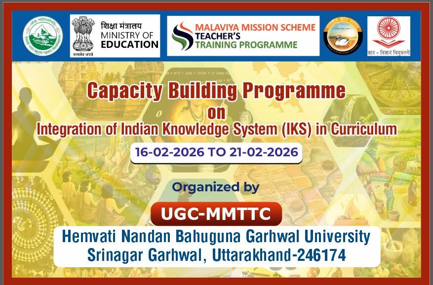 श्रीनगर। हेमवती नंदन बहुगुणा गढ़वाल विश्वविद्यालय के यूजीसी-मालवीय मिशन टीचर्स ट्रेनिंग सेंटर (एमएमटीसी) की ओर से भारतीय ज्ञान परम्परा के पाठ्यक्रम में प्रभावी एकीकरण के उद्देश्य से 16 फरवारी से विशेष क्षमता निर्माण कार्यक्रम आयोजित किया जायेगा। एमएमटीसी के निदेशक प्रो. डीएस नेगी ने कहा कि शिक्षा मंत्रालय, भारत सरकार तथा विश्वविद्यालय अनुदान आयोग (यूजीसी) द्वारा प्रायोजित प्रशिक्षण कार्यक्रम 16 से 21 फरवरी तक अकादमिक क्रियाकलाप केन्द्र चौरास परिसर में आयोजित किया जायेगा। कहा कि प्रशिक्षण कार्यक्रम में देश के विभिन्न विश्वविद्यालयों से 55 संकाय सदस्य तथा विश्वविद्यालय नगर से 45 शोधार्थी प्रतिभाग करेंगे। बताया कि यूजीसी द्वारा केंद्रीय संस्कृत [more…]