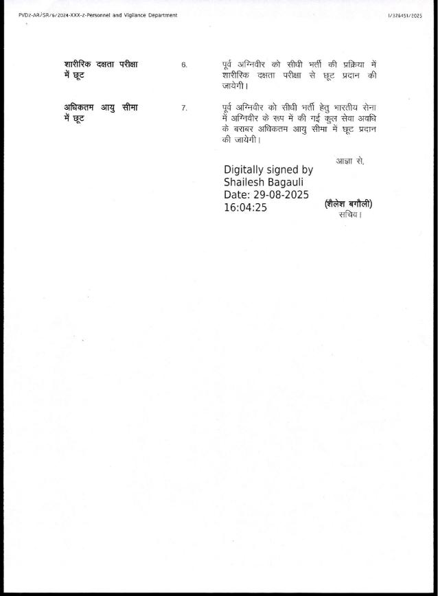 देश की सेवा कर लौटे पूर्व अग्निवीर प्रदेश का गौरव हैं। उन्हें सम्मान और रोजगार का अवसर देना हमारी जिम्मेदारी है। यह निर्णय सेवामुक्त हुए अग्निवीरों के भविष्य को सुरक्षित करने की दिशा में एक ठोस कदम है। हमारी सरकार पूर्व सैनिकों और अग्निवीरों को हर तरह से सेवायोजन का प्रयास कर रही है।- पुष्कर सिंह धामी, मुख्यमंत्री