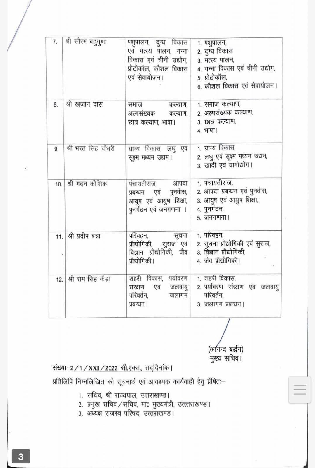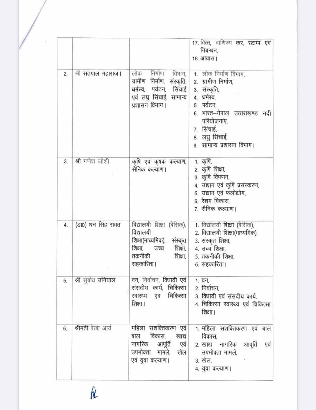 उत्तराखंड में मंत्रियों को बंटे विभाग
