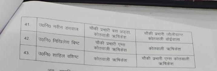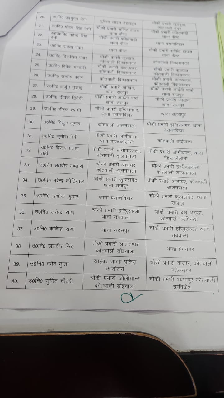 देहरादून। वरिष्ठ पुलिस अधीक्षक देहरादून अजय सिंह ने रविवार देर रात को कई निरीक्षकों औरउप निरीक्षकों के स्थानांतरण किये हैं।