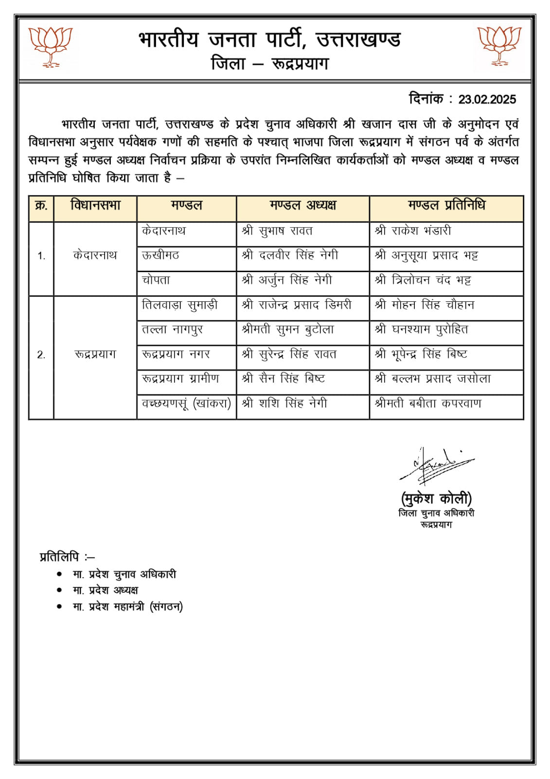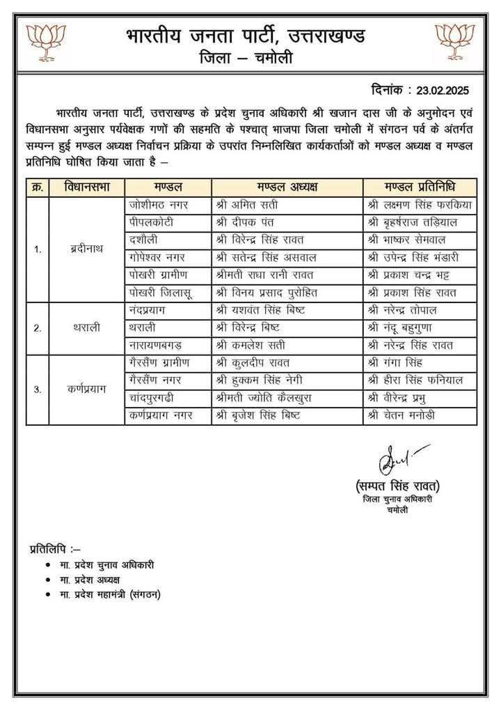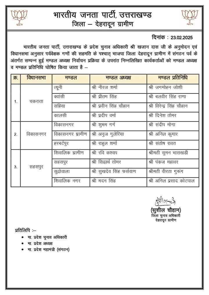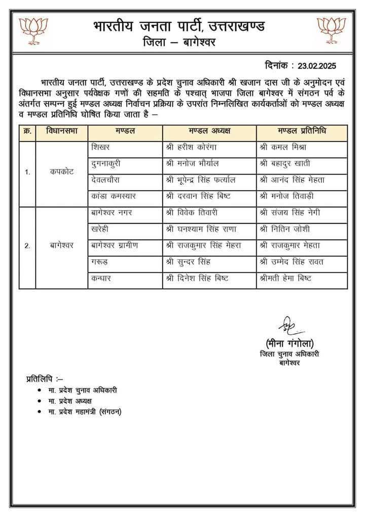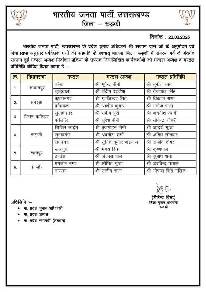 उत्तराखंड में भाजपा मंडल अध्यक्षों के नाम घोषित, सूची जारी February 23, 2025 Estimated read time 0 min read