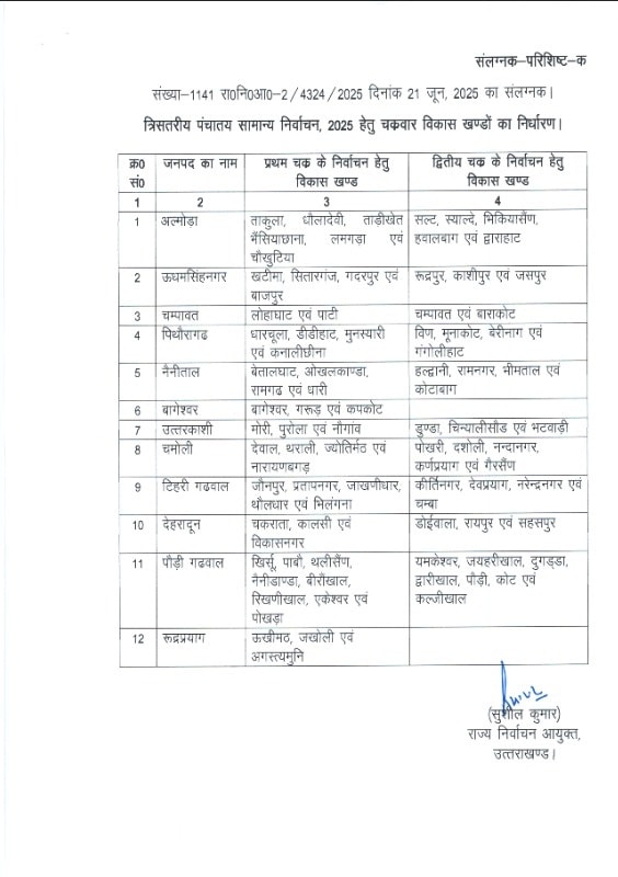 त्रिस्तरीय पंचायत सामान्य निर्वाचन 2025 हेतु चक्रवार विकासखण्डों की सूची