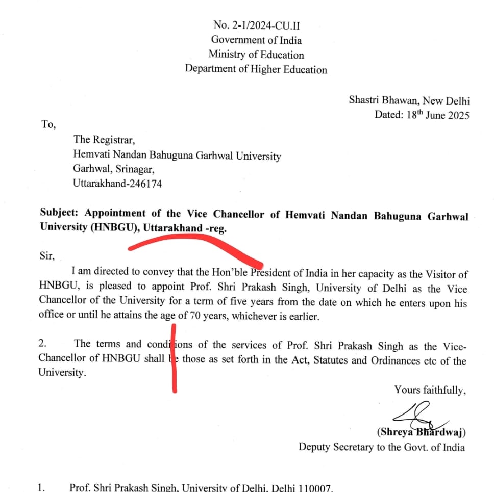 प्रोफेसर श्री प्रकाश सिंह गढ़वाल विश्वविद्यालय के कुलपति नियुक्त