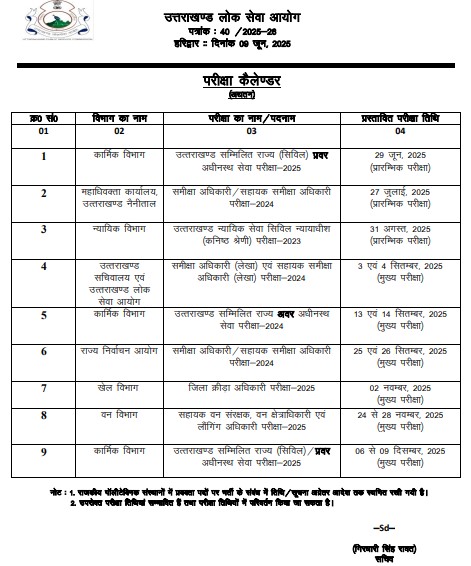 UKPSC की वर्ष 2025 में होने वाली भर्ती परीक्षाओं का कैलेंडर जारी