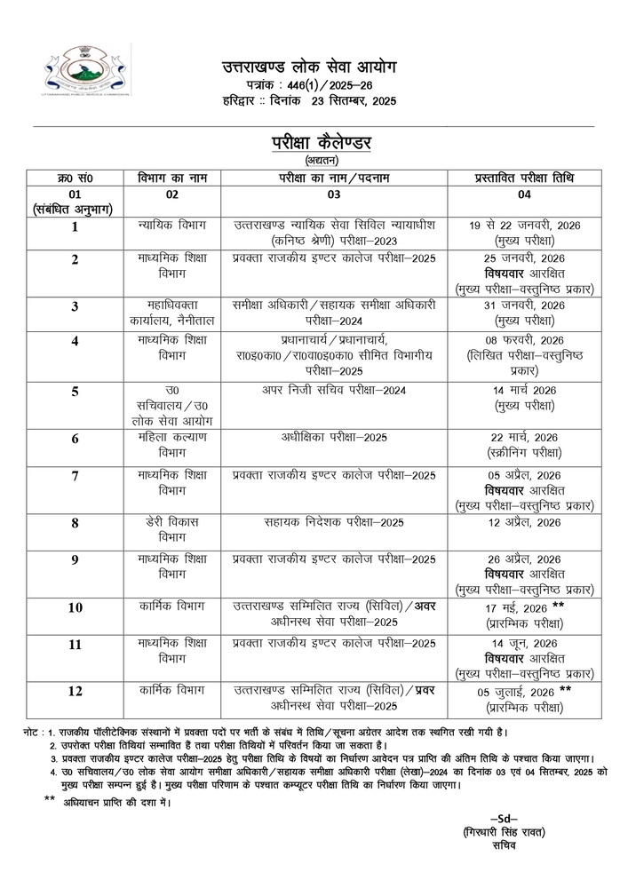 UKPSC ने जारी किया भर्ती परीक्षा का कैलेंडर September 24, 2025 Estimated read time 1 min read Home/यूथ/UKPSC ने जारी किया भर्ती परीक्षा का कैलेंडर देहरादून। उत्तराखंड लोक सेवा आयोग ने भर्ती परीक्षा का कैलेंडर जारी किया है।