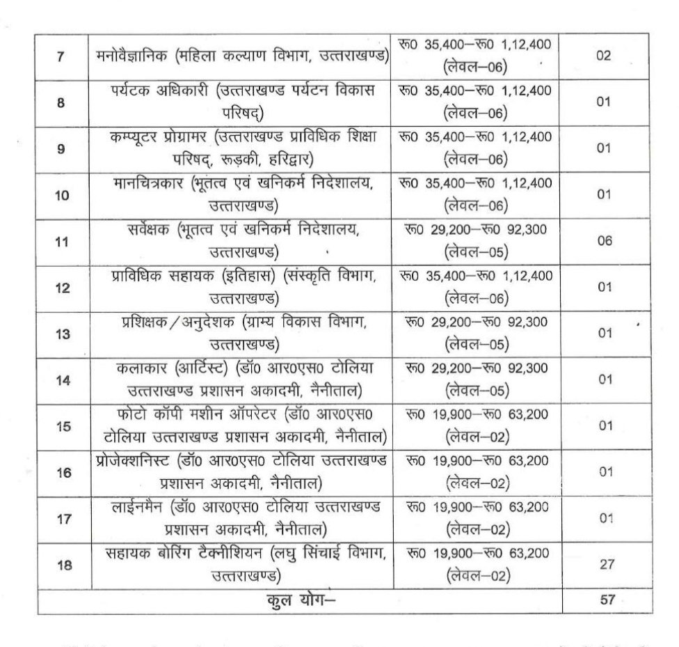 देहरादून। उत्तराखण्ड अधीनस्थ सेवा चयन आयोग ने विभिन्न विभागों के अंतर्गत विभिन्न पदनामों के समूह ‘ग’ के रिक्त 57 पदों पर सीधी भर्ती द्वारा चयन हेतु ऑनलाइन आवेदन पत्र आमन्त्रित किए हैं।