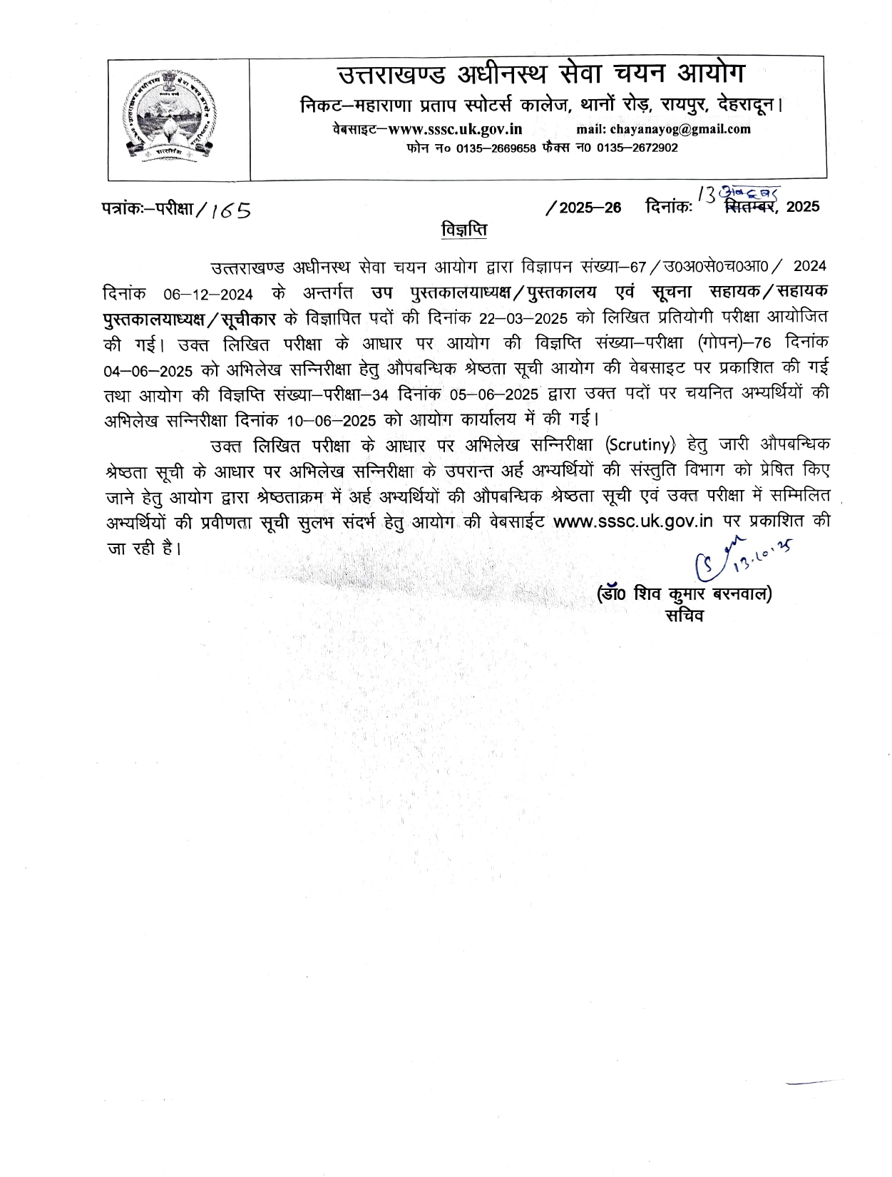 देहरादून। उत्तराखंड अधीनस्थ सेवा चयन आयोग ने उप पुस्तकालयाध्यक्ष/पुस्तकालय एवं सूचना सहायक/ सहायक पुस्तकालयाध्यक्ष/सूचीकार भर्ती परीक्षा का रिजल्ट घोषित कर दिया है।