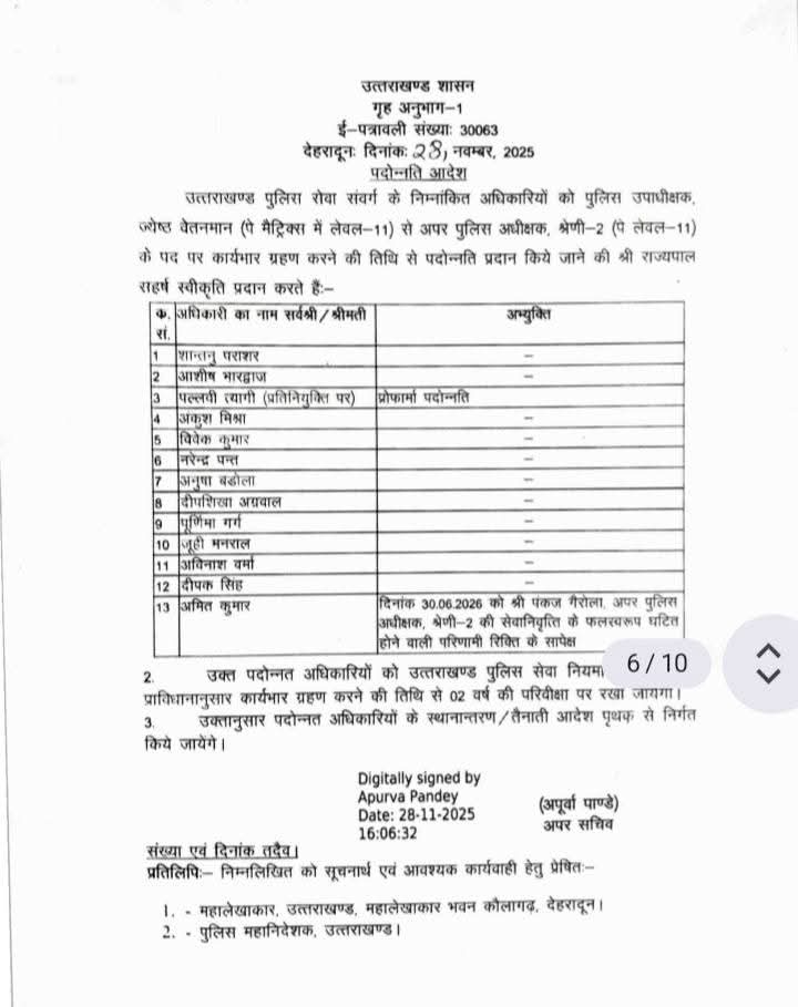 उत्तराखंड में 32 PPS अधिकारियों का प्रमोशन, देखें  आदेश