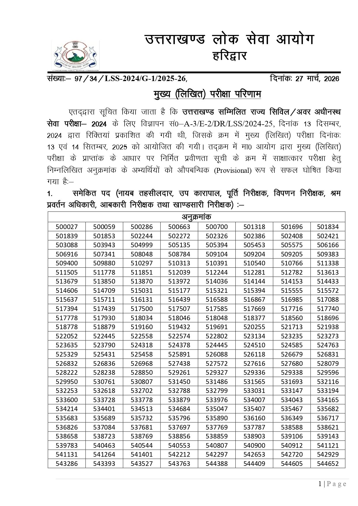 उत्तराखंड लोअर पीसीएस का रिजल्ट घोषित March 27, 2026 Estimated read time 1 min read देहरादून। उत्तराखंड लोक सेवा आयोग ने उत्तराखंड सम्मिलित राज्य सिवित/अवर अधीनस्थ सेवा परीक्षा-2024 का रिजल्ट घोषित कर दिया है।