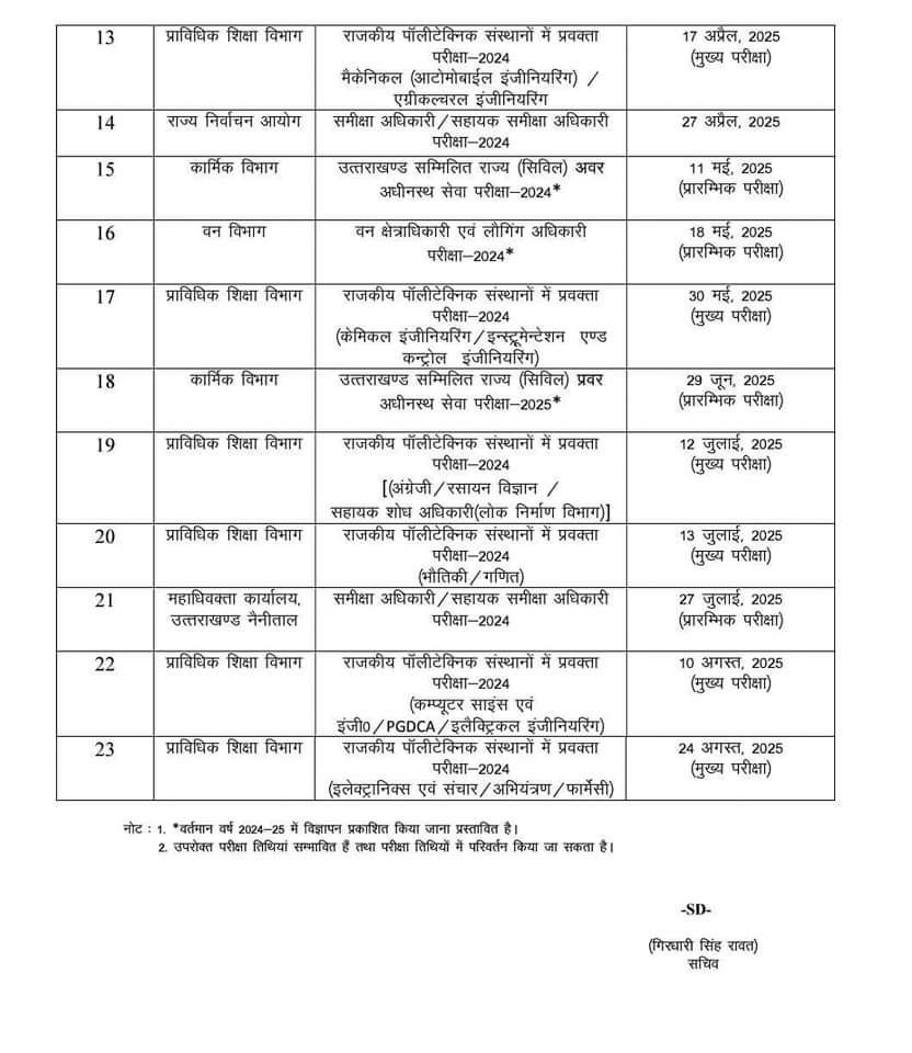 उत्तराखंड लोक सेवा आयोग ने जारी किया परीक्षा कैलेंडर